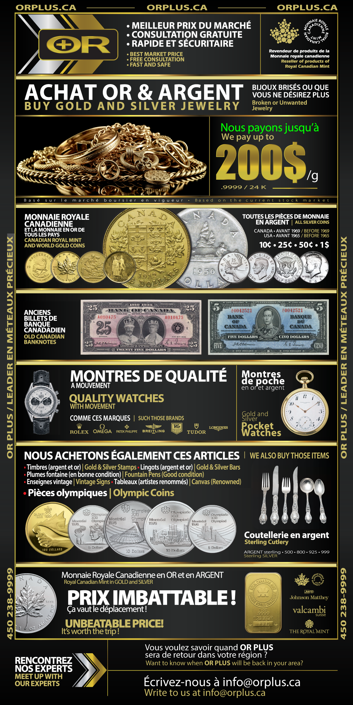 Our GOLD PLUS experts travel to several cities across Quebec, Ontario, and New Brunswick